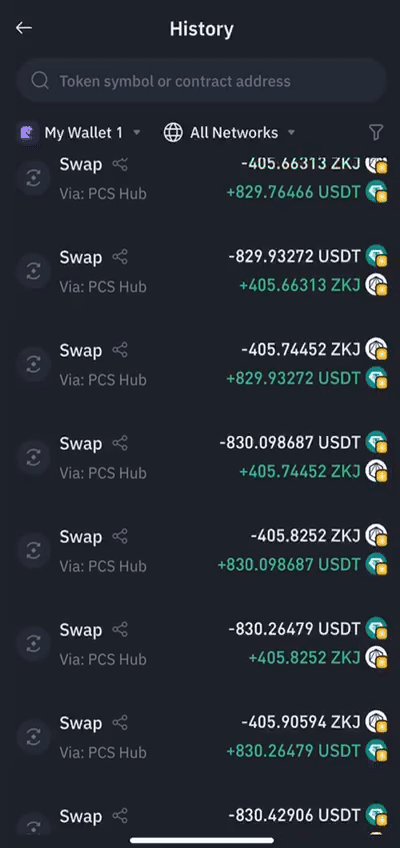 하루 거래량으로 16점을 억기 위해서는 넉넉잡아 $74,000의 거래량을 달성해야합니다. 이를 $800 단위로 스왑하면 약 93번의 걸래를 해야 하죠. 이 거래 내역을 일일이 확인하려면 거래소에서 스크롤을 내리며 하나씩 세어야 했습니다.